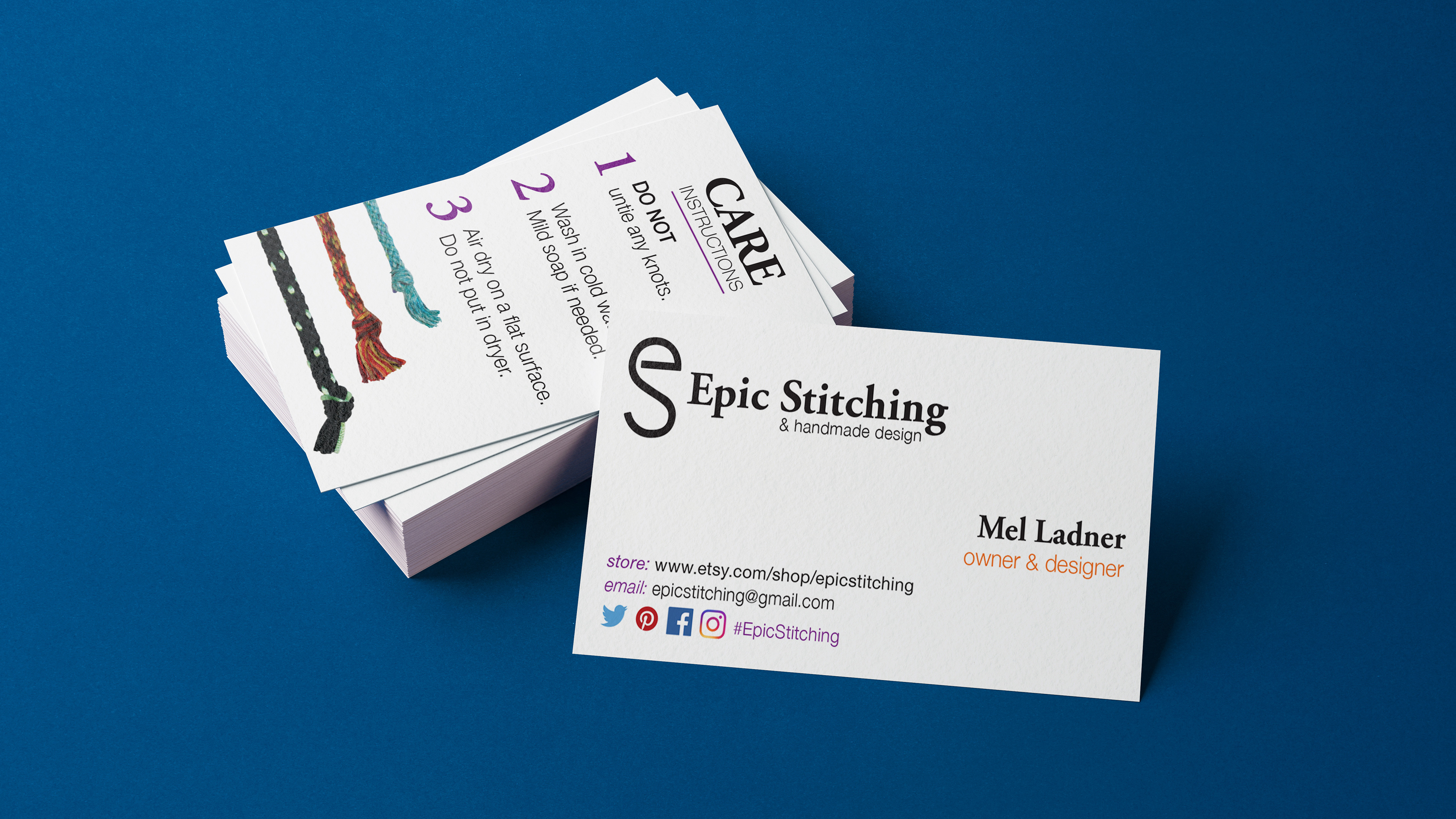 An Etsy store selling hand made fiber jewelry. I worked with the owner to develop the logo, create double-sided business cards which included care instructions for the products, and the banners for her online and social media presence.